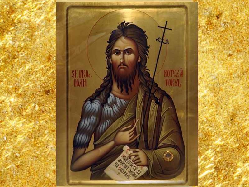 Sfântul Ioan Botezătorul a fost rânduit de Dumnezeu încă din pântecele mamei sale să fie Înaintemergător al lui Hristos. Trăind în pustie, în aspră nevoință și rugăciune, el a propovăduit pocăința și întoarcerea la Dumnezeu, botezând în apele Iordanului spre iertarea păcatelor.