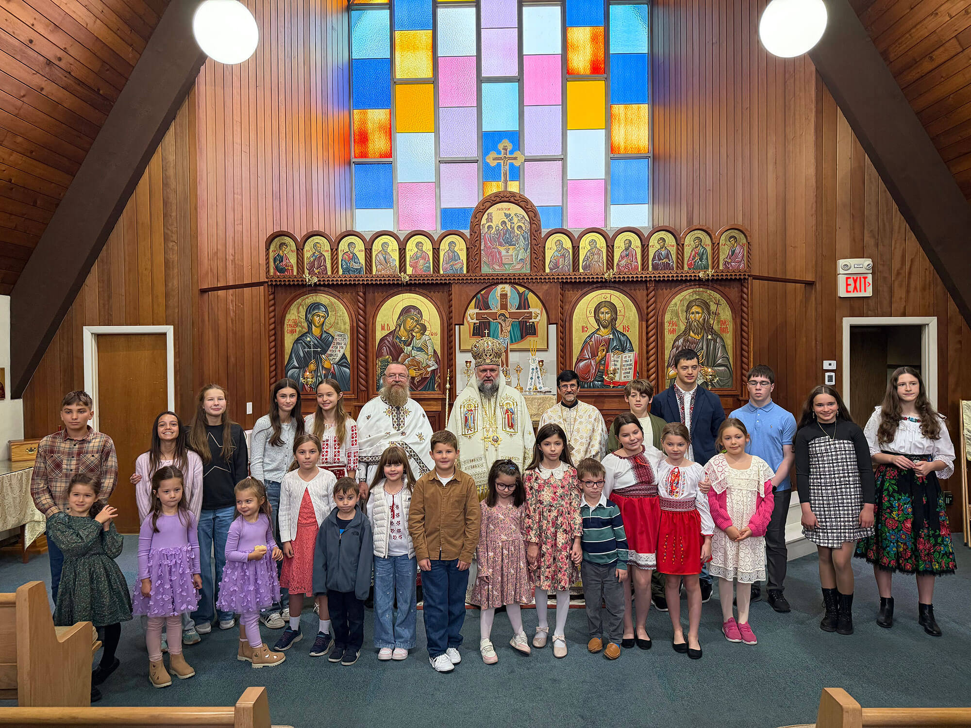 Sunday School students with His Eminence, Mitropolitan Nicolae during his pastoral visit.